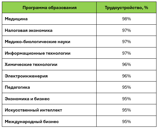 Согласно этому последнему исследованию самые высокие шансы трудоустройства по окончанию магистратуры по специальностям таковы: