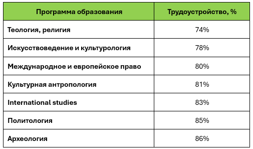 При этом самые низкие шансы трудоустройства имеют выпускники следующих специальностей: